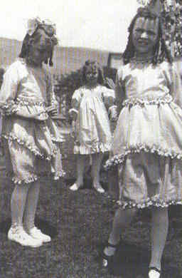 Marge in ruffles? - The above photo was taken in Rawlins in the back yard on Maple St. From L to R - Marie, Marge and Pearl. |