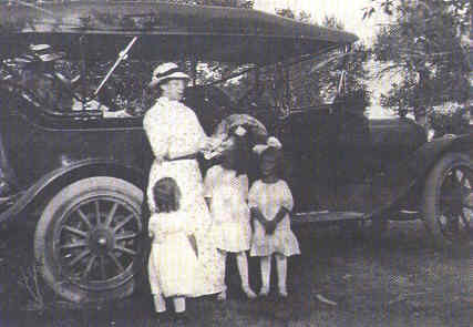 Posing with the family car are Marge, Grandma Spragg (Minnie Pearl's mother), Pearl and Marie. |