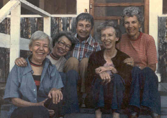 1978 photo of 5 Hartt Sisters on the steps of the Hartt Family Headquarters on the shores of Pearl Lake. From L to R: Marie, Marge, Lou, Catherine (Kay) and Pearl. |